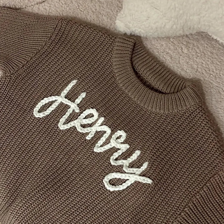 Den Namen oder dein Wunschwort kannst du ganz einfach während des Bestellvorgangs angeben. Wir besticken jeden Pullover mit viel Liebe und Sorgfalt direkt mit deiner Personalisierung – so entsteht ein individuelles Einzelstück.