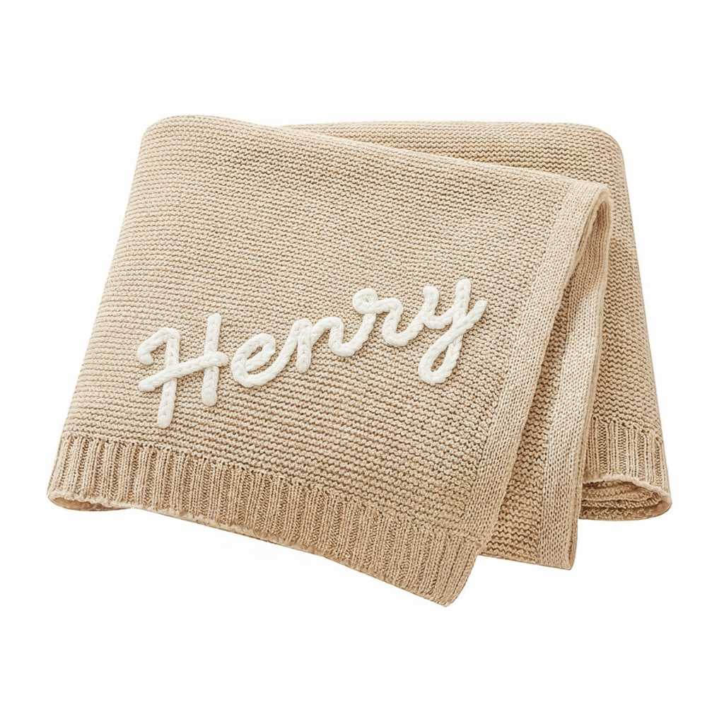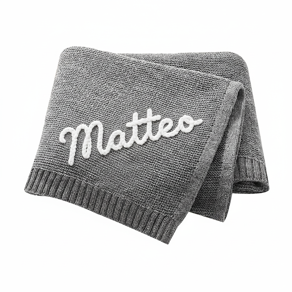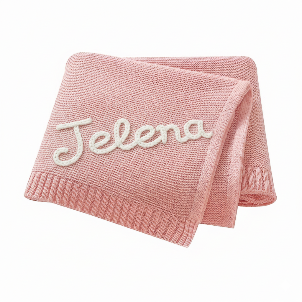 Gestalte deine Decke ganz persönlich: wähle die Farbe, ergänze den Namen deines Kindes und füge – wenn du magst – ein zartes, verspieltes Motiv hinzu.